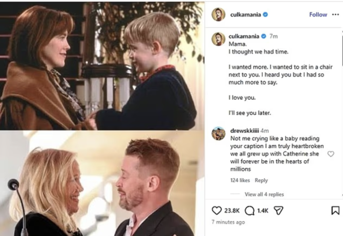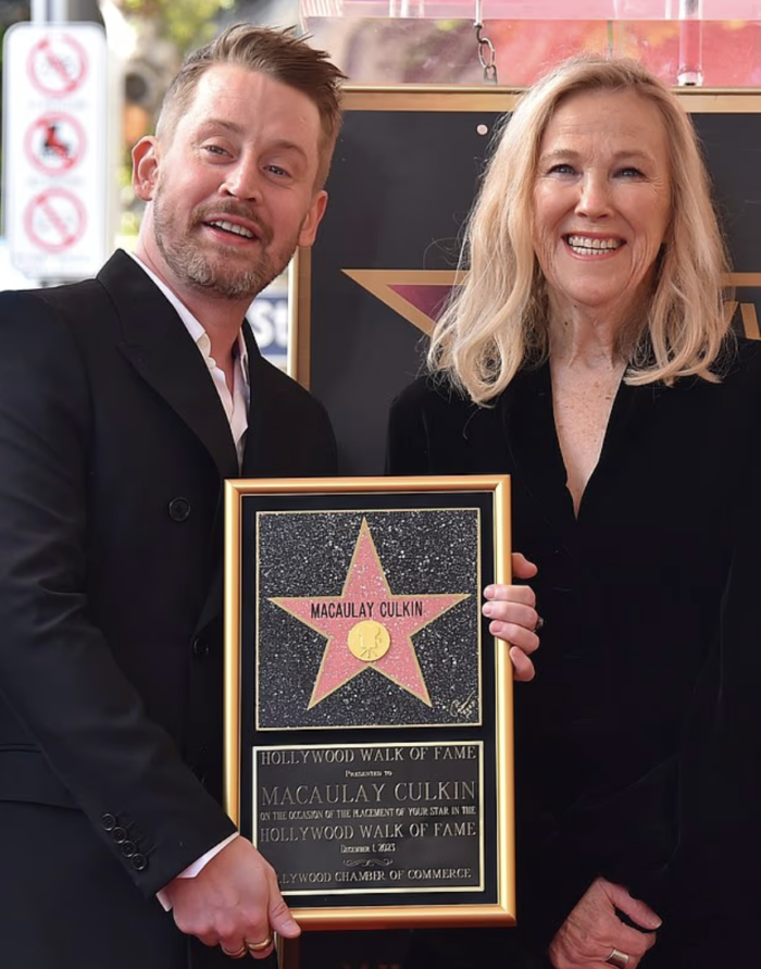 Он поделился двумя фотографиями: на одной — кадр из классического фильма «Один дома», на другой — недавняя церемония на его Аллее славы в Голливуде в 2023 году.