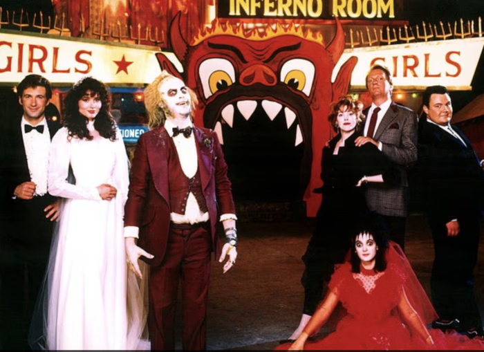«Битлджус» стал одним из самых успешных фильмов О’Хары (Алек Болдуин, Джина Дэвис, Майкл Китон, О’Хара, Вайнона Райдер и Джеффри Джонс в 1988 году)
