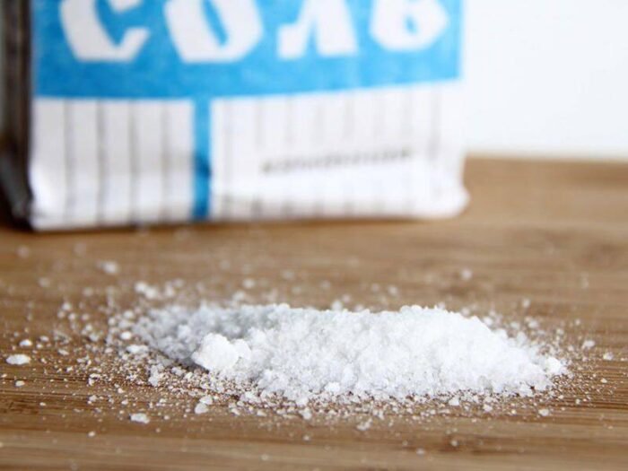 Даже если она слегка слежалась, проблему легко решить. Комки можно аккуратно разбить, а при сильной влажности — немного подсушить соль на сухой сковороде. После этого она снова станет рассыпчатой.